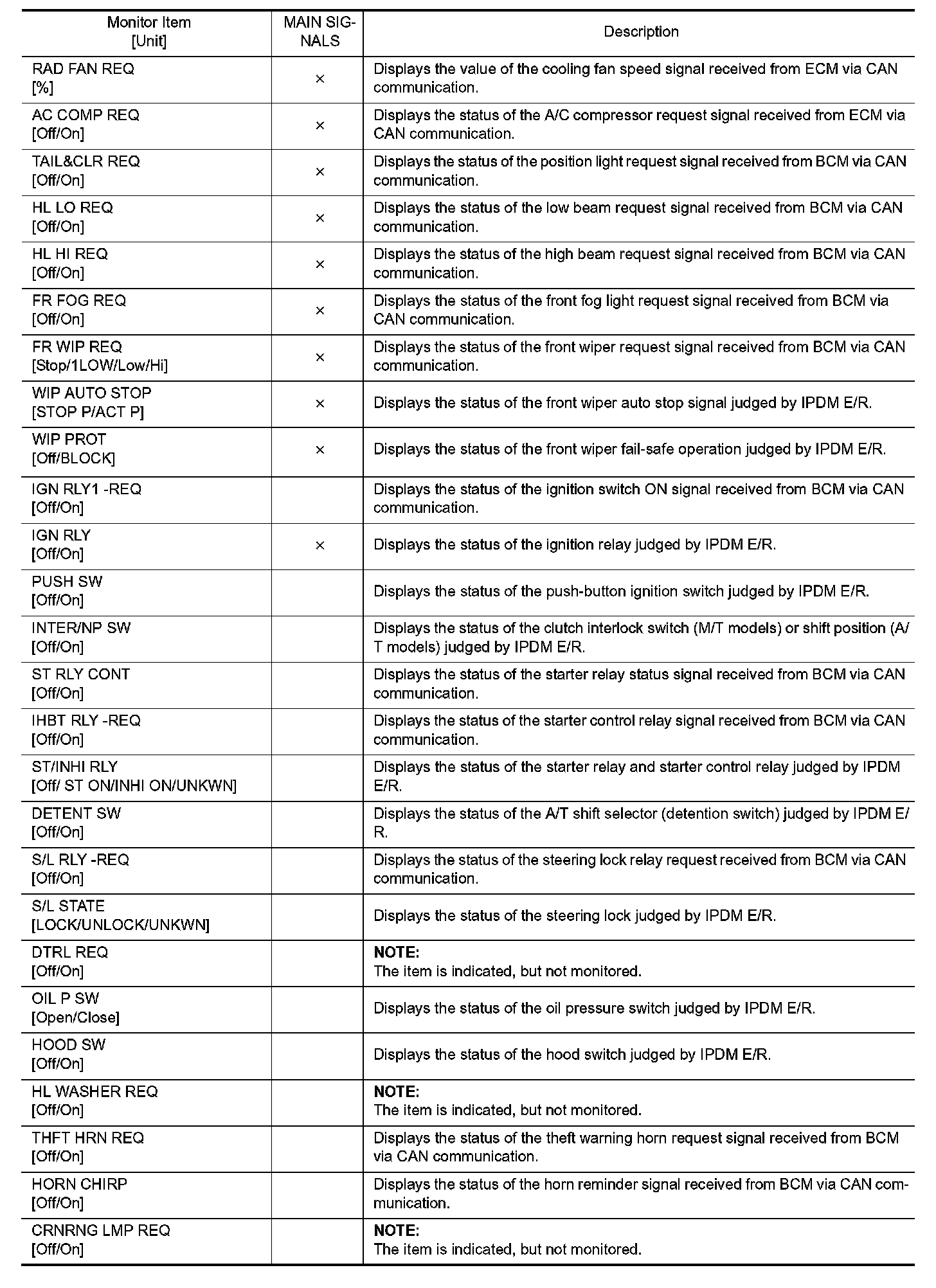 Diagnosis System (IPDM E/R)