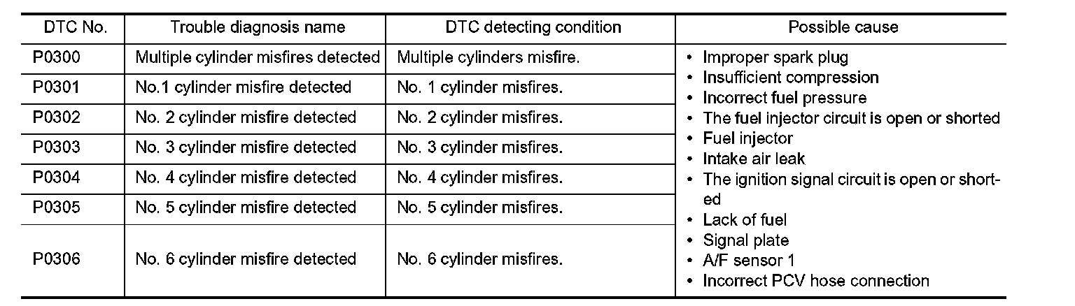 P0300, P0301, P0302, P0303, P0304, P0305, P0306 MISFIRE