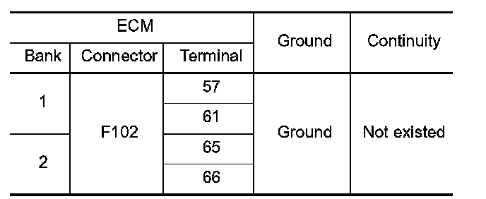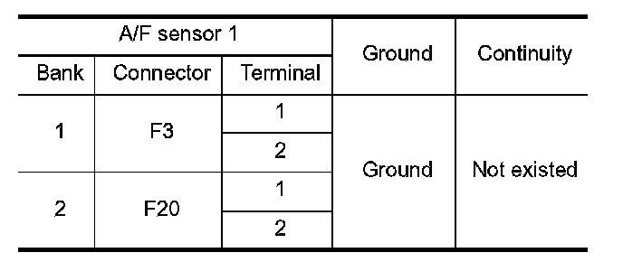 5. Check the continuity between A/F sensor 1 harness connector and ground, or ECM harness connector and ground.