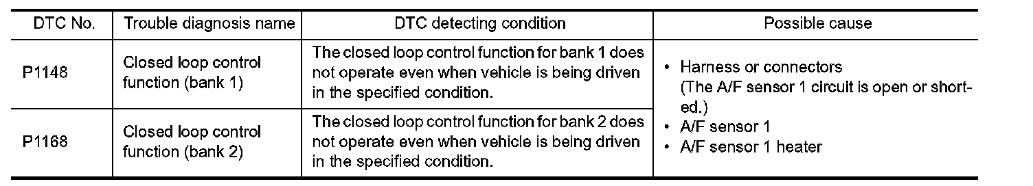 DTC P1148 or P1168 is displayed with another DTC for A/F sensor 1.