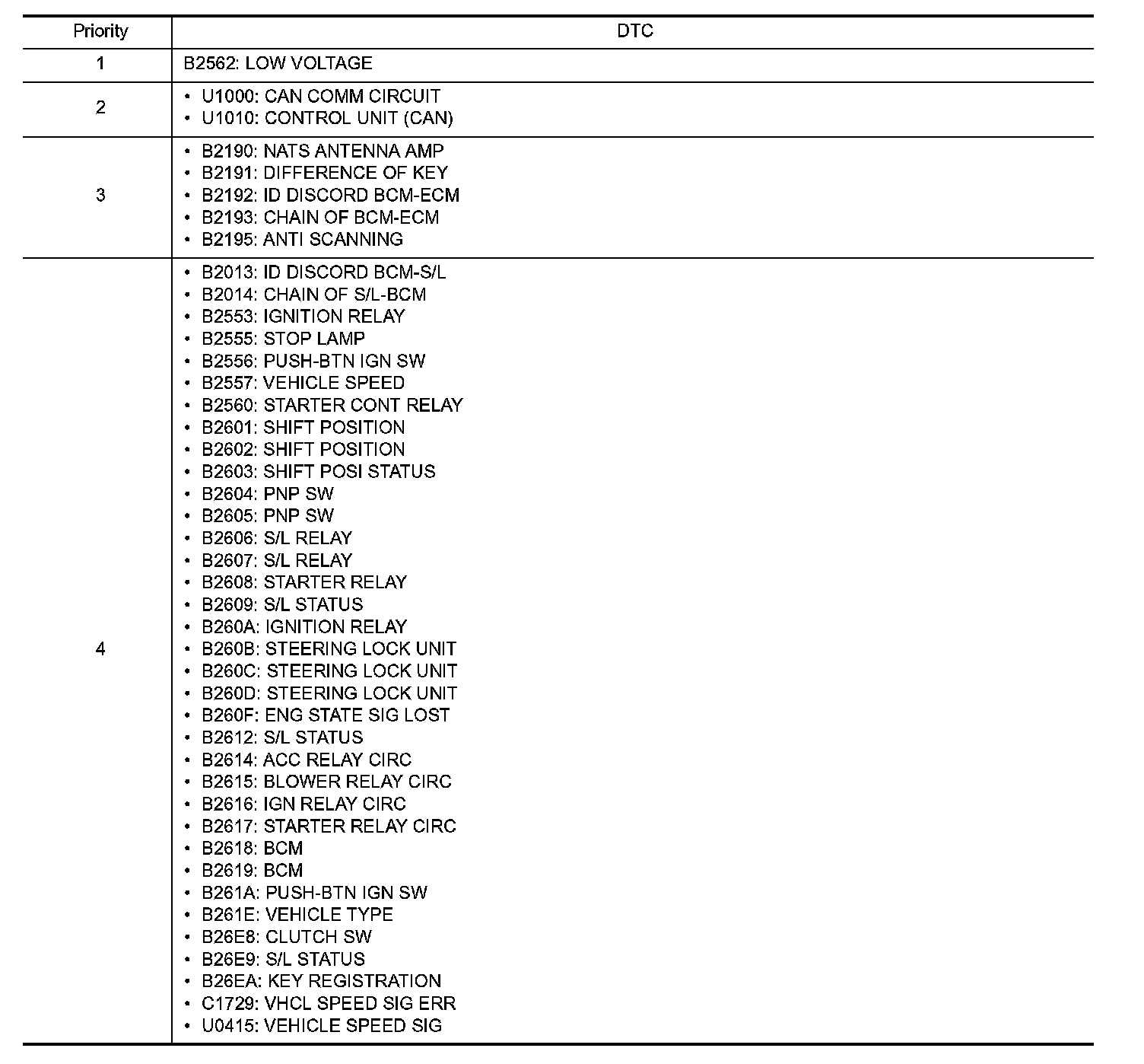 DTC Inspection Priority Chart (Part 2):