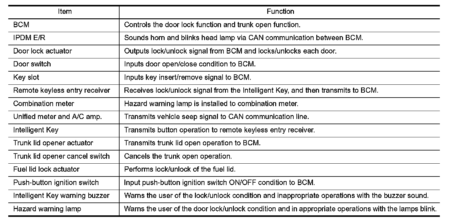 REMOTE KEYLESS ENTRY FUNCTION : Component Description