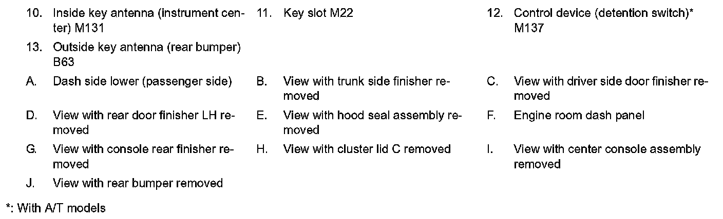 WARNING FUNCTION : Component Parts Location