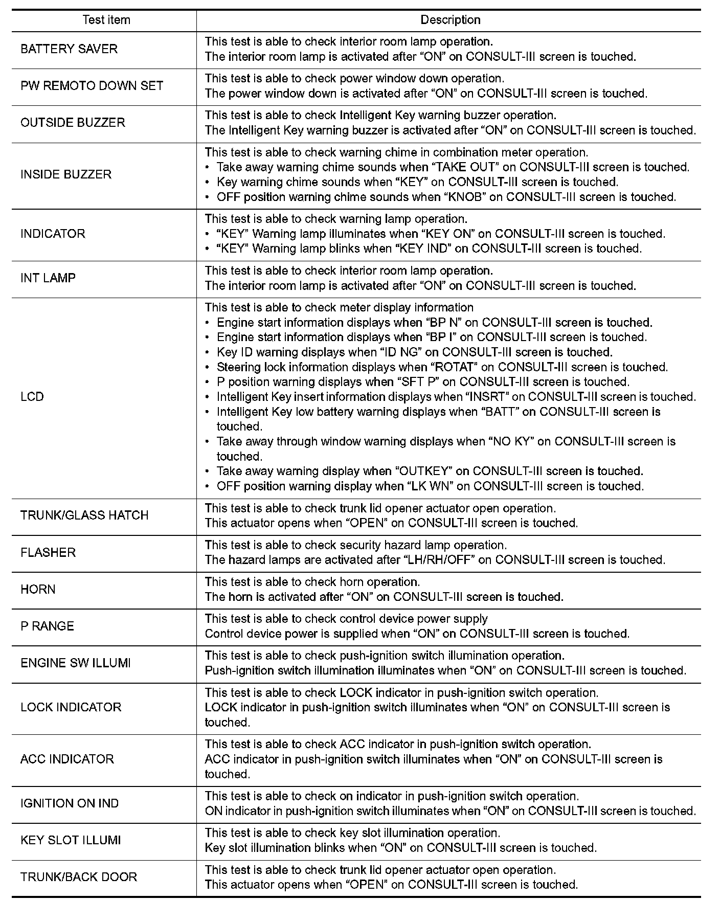 INTELLIGENT KEY : CONSULT-III Function (BCM - INTELLIGENT KEY)