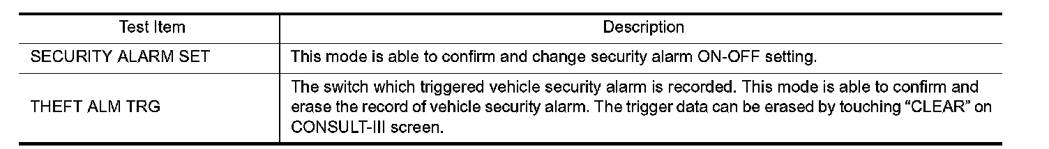 THEFT ALM : CONSULT-III Function (BCM - THEFT)