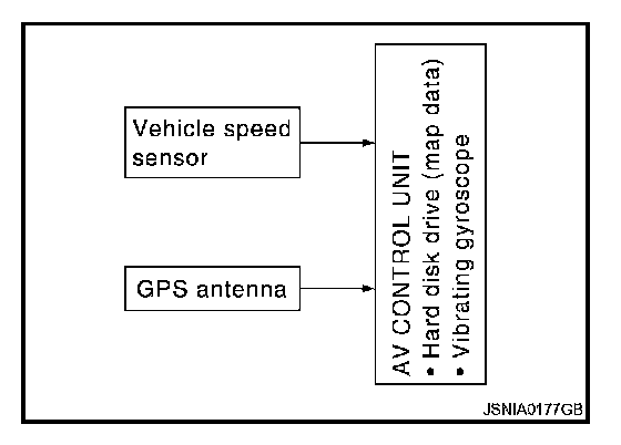 - The AV control unit controls navigation function while GPS tuner has built-in map data, GYRO (angle speed sensor), on the HDD (Hard Disk Drive).