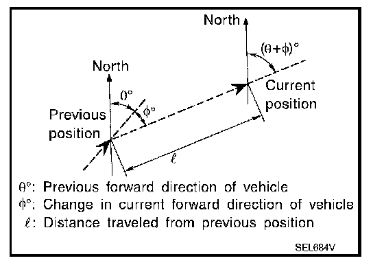 The navigation system periodically calculates the current vehicle position according to the following three types of signals.