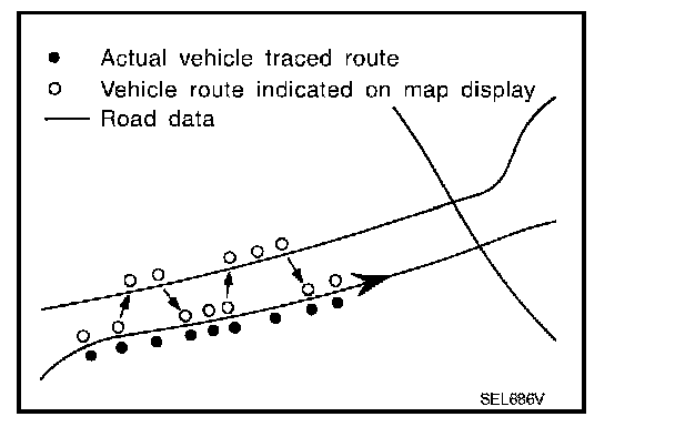 Also, map-matching does not function correctly when road pattern stored in the map data and the actual road pattern are different due to repair, etc.