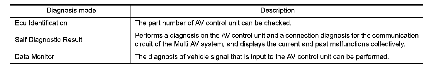 DIAGNOSIS SYSTEM (AV CONTROL UNIT)