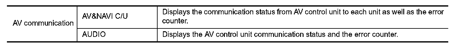 When "AV communication" of "CAN Diag Support Monitor" is selected, the following function will be performed.