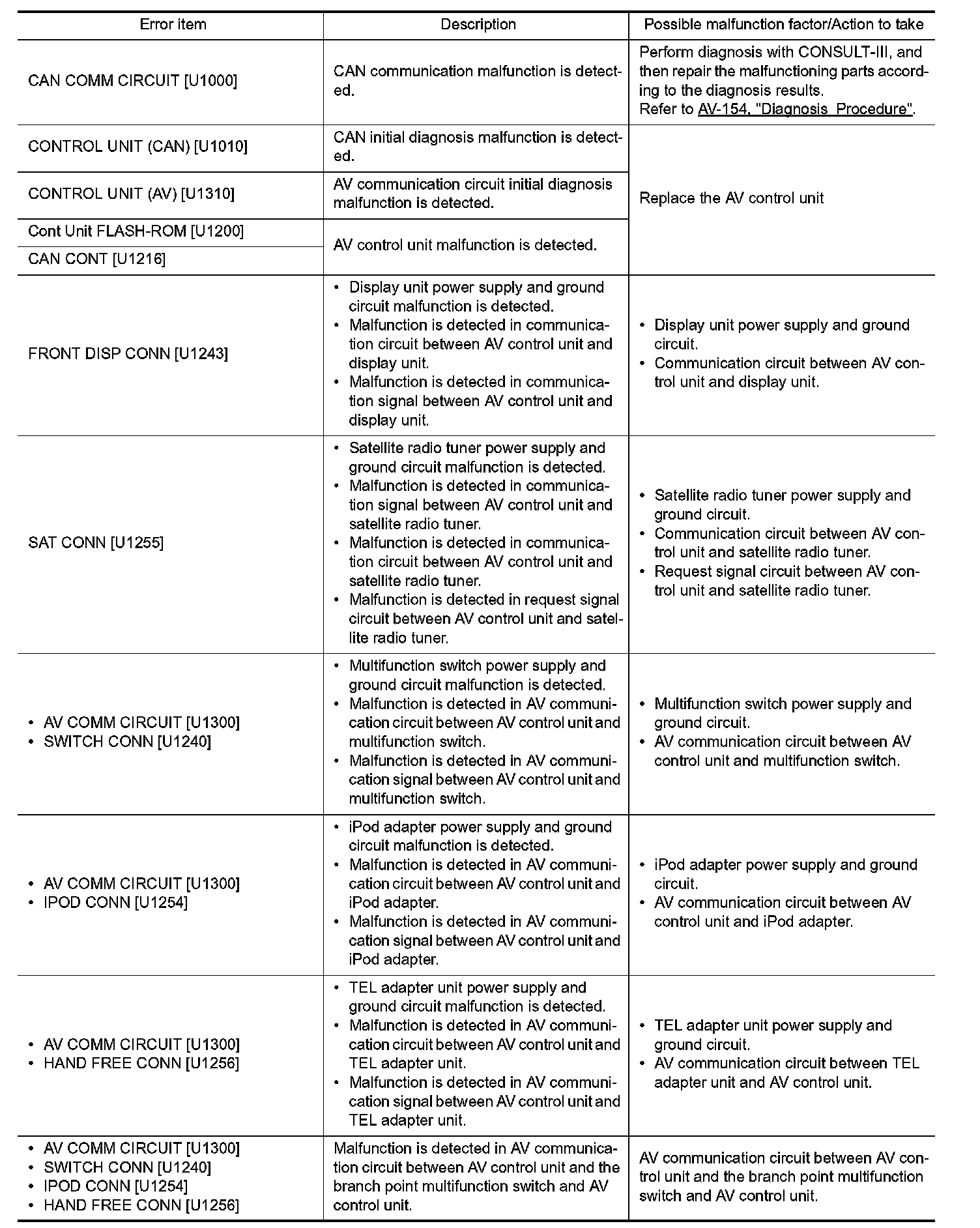 CONSULT-III performs the following functions via the communication with the AV control unit.