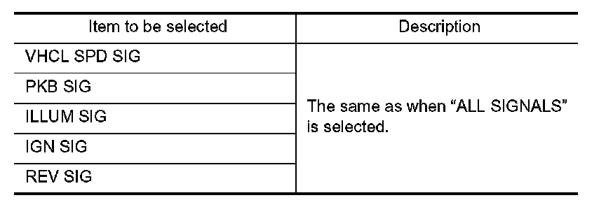 Allows the technician to select which vehicle signals should be displayed and displays the status of the selected vehicle signals.