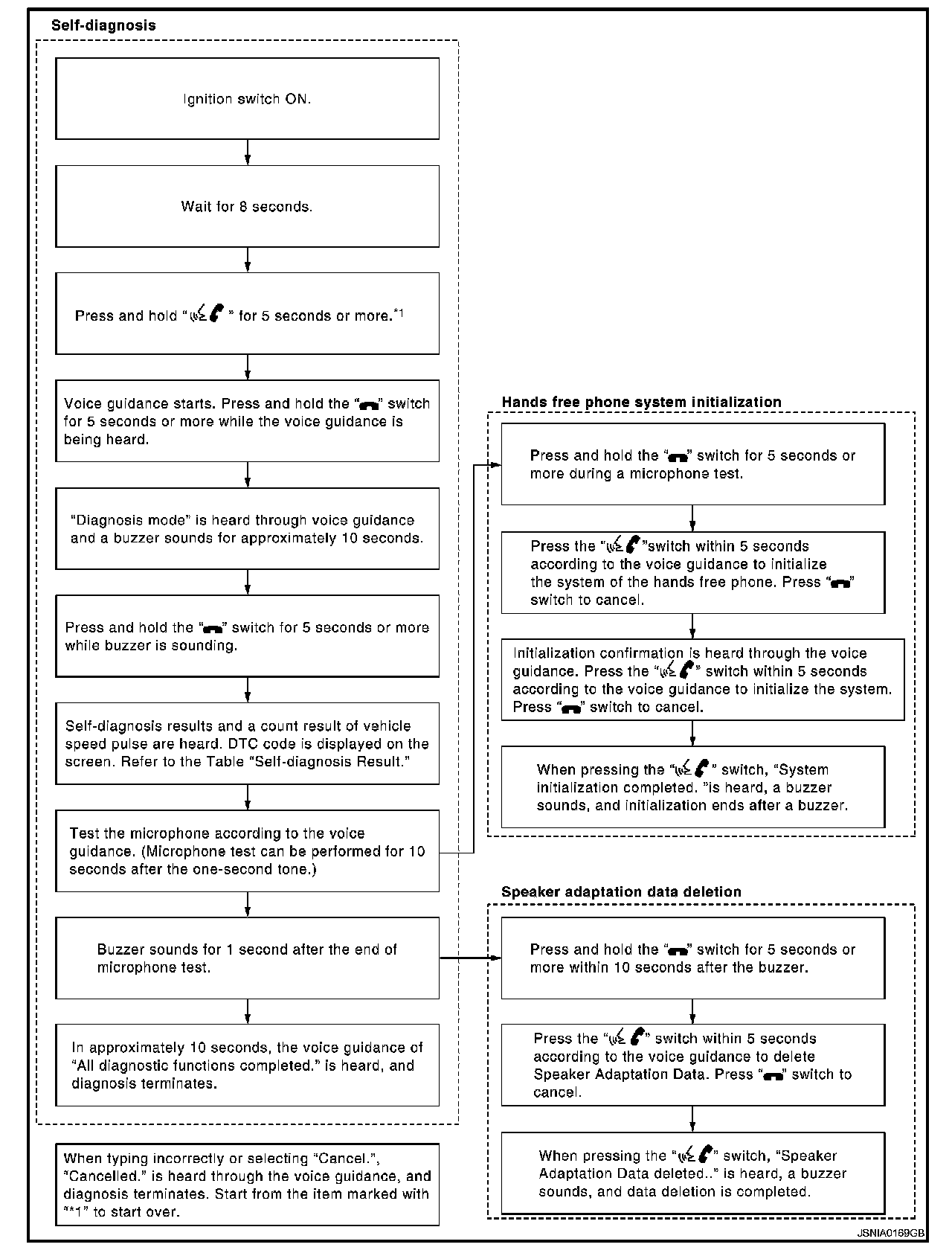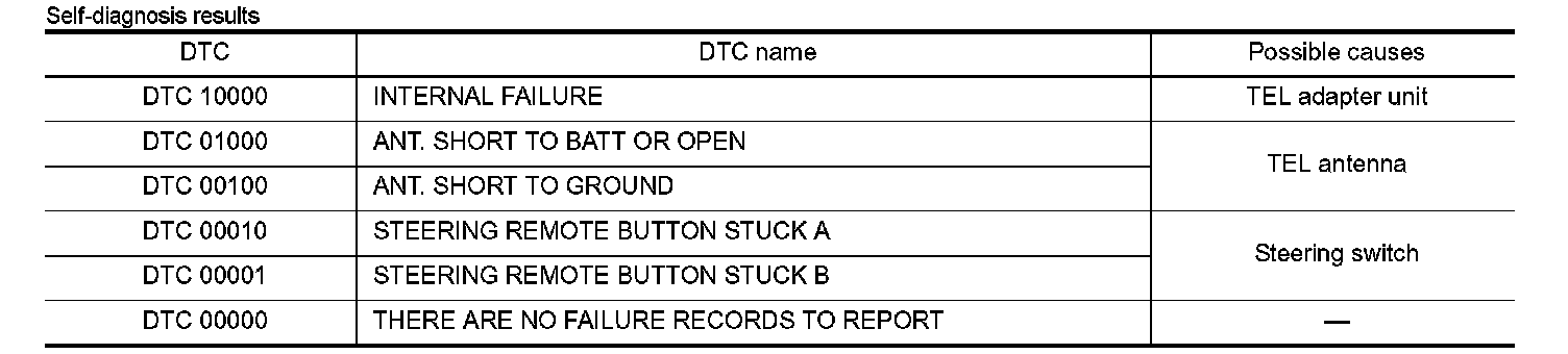 During on board diagnosis the diagnosis function of TEL adapter unit starts with the operation of the steering switch and performs the diagnosis when ignition switch ACC.