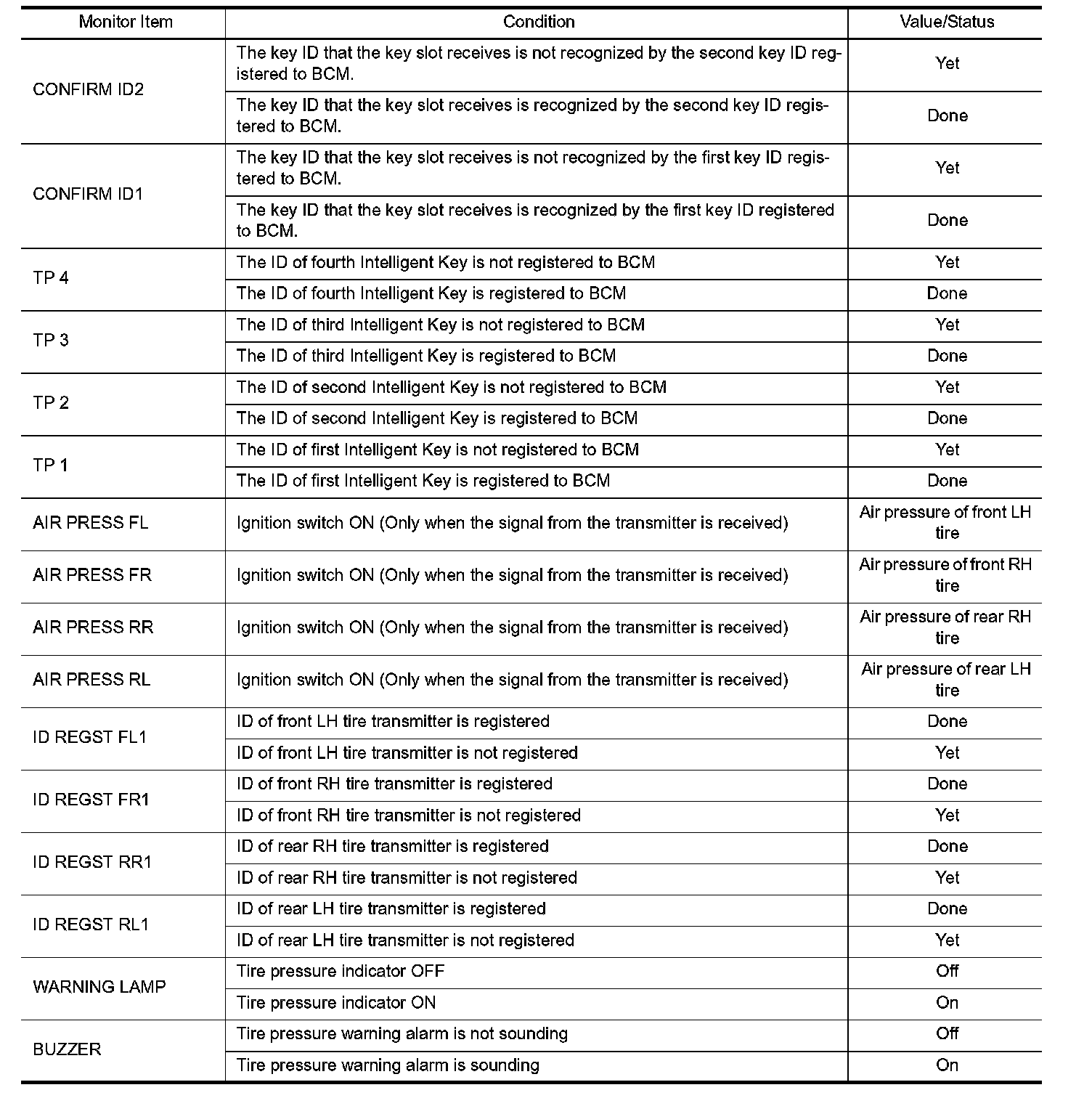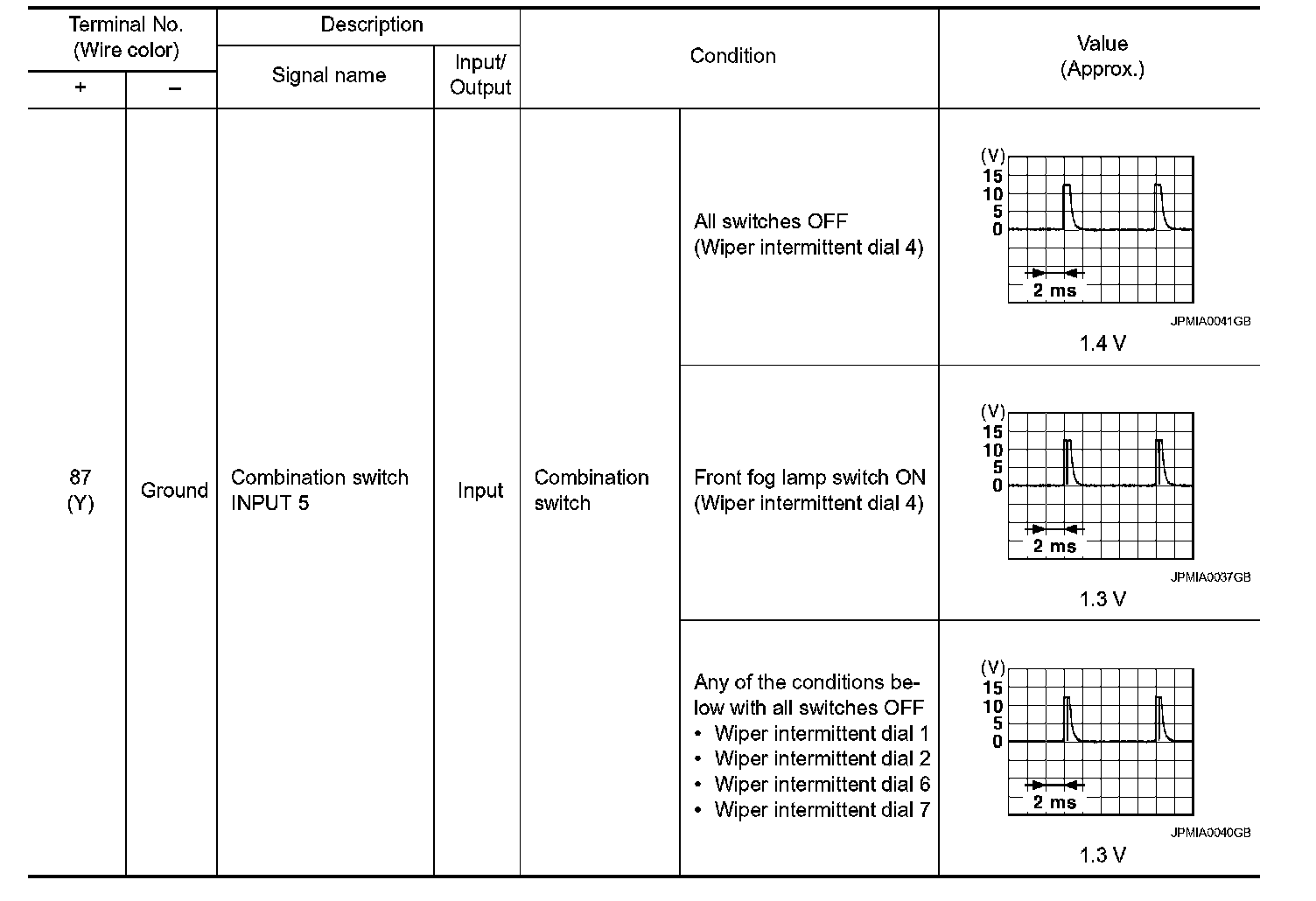 Pinout Values and Diagnostic Parameters