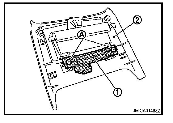 3. Remove the inside key antenna mounting screw (A), and then remove inside key antenna (console) (1) from console rear finisher (2).
