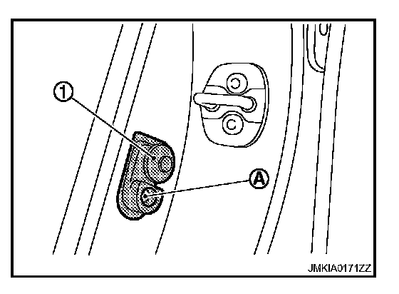 Remove the door switch mounting bolt (A), and then remove door switch (1).
