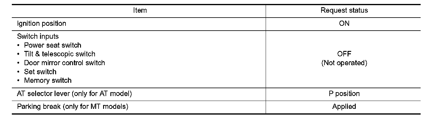 Satisfy all of the following items. The memory function is not performed if these items are not satisfied.