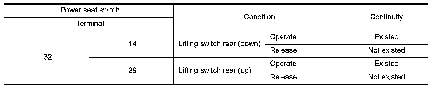3. Check continuity between power seat switch terminals.