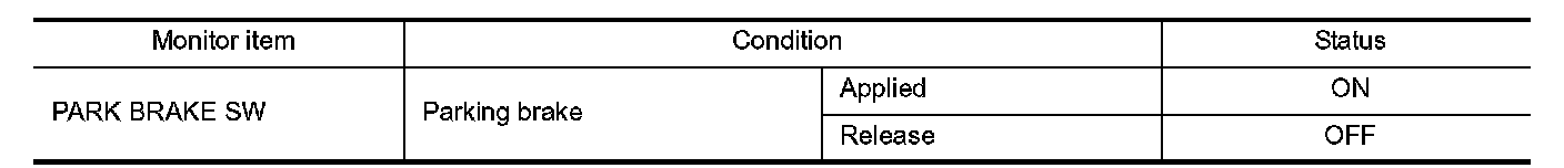 2. Check parking brake switch signal under the following conditions.