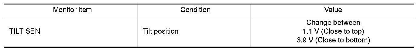 3. Check the tilt sensor signal under the following condition.