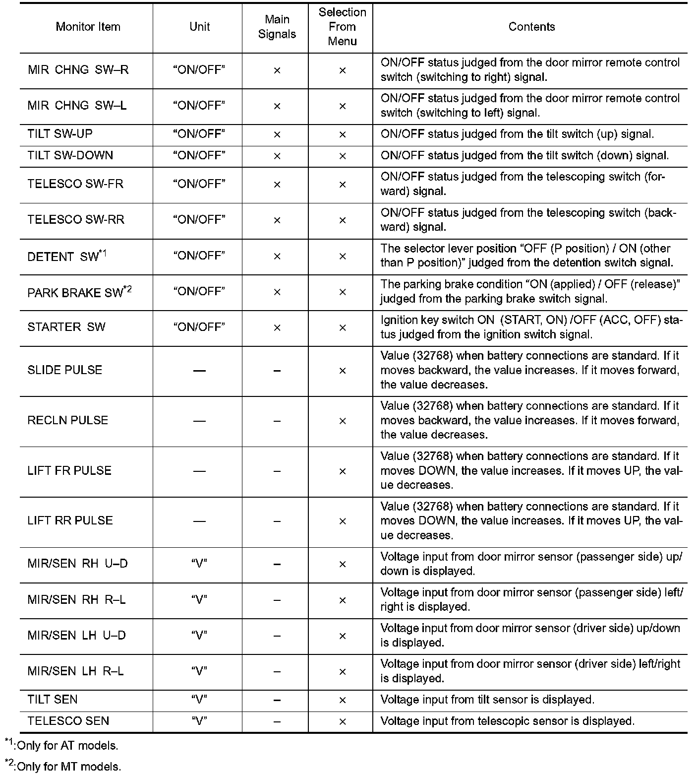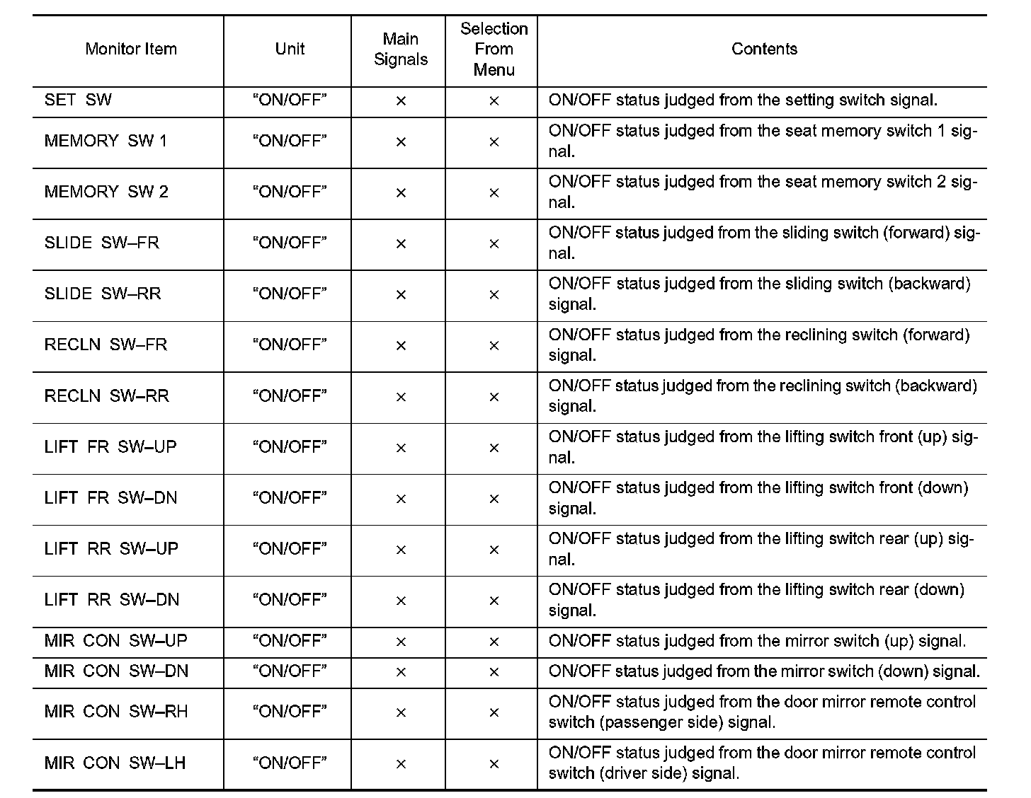 DIAGNOSIS SYSTEM (DRIVER SEAT C/U)