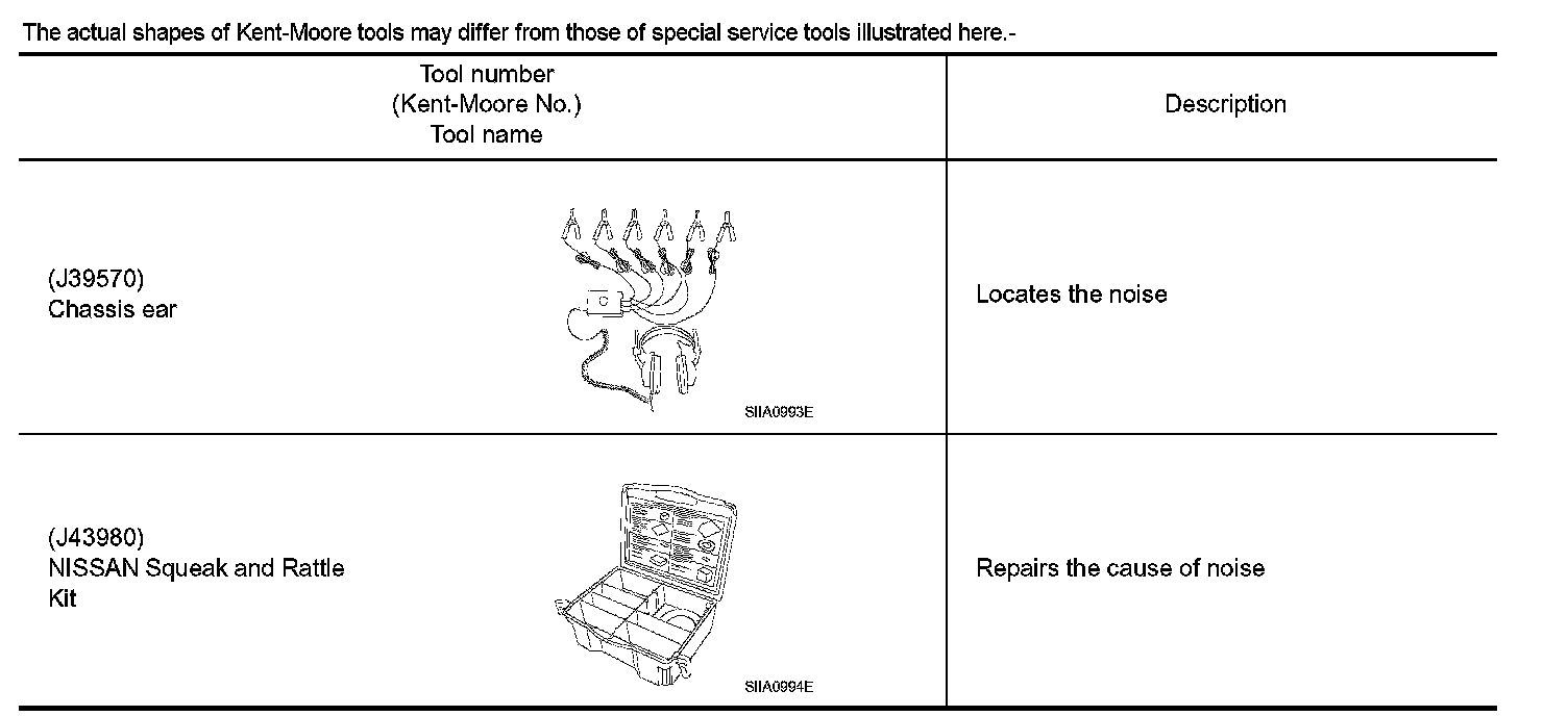 The actual shapes of Kent-Moore tools may differ from those of special service tools illustrated here.