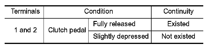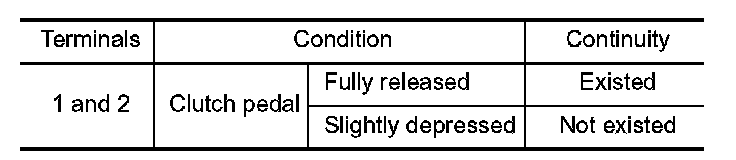 3. Check the continuity between ASCD clutch switch terminals under the following conditions.