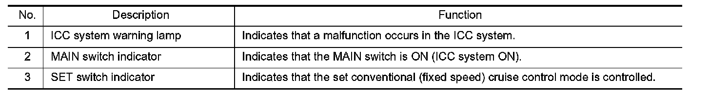 After hold the MAIN switch ON for longer than approximately 1.5 seconds, the ICC system display goes out.