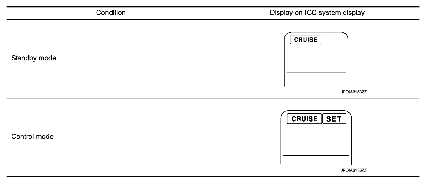 When pushing the MAIN switch ON, the ICC system display and the MAIN switch indicator are displayed on the information display.