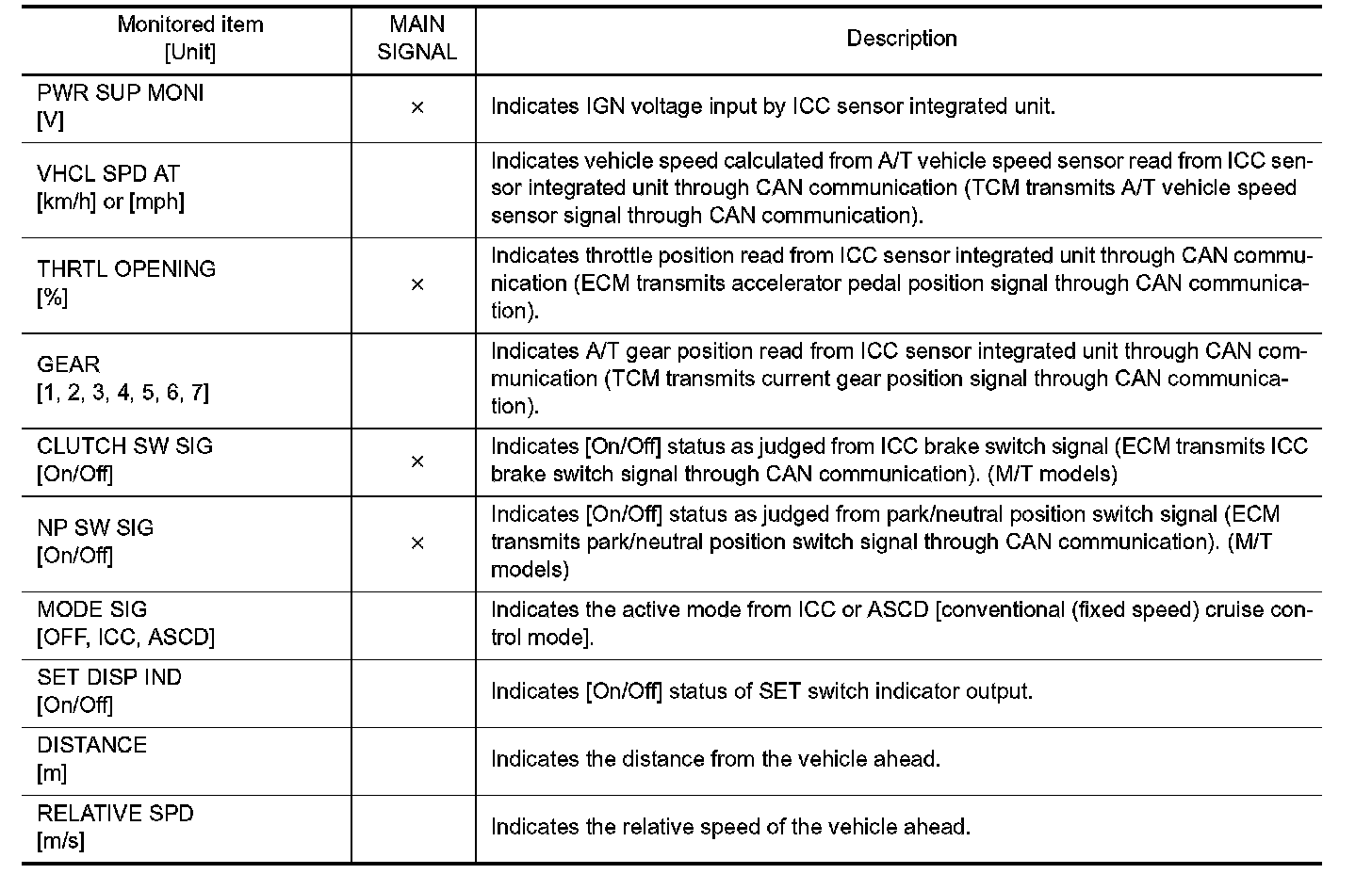 CONSULT-III performs the following functions via CAN communication using ICC sensor integrated unit.