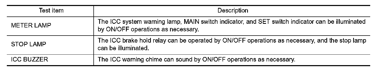 - The "Active Test" cannot be performed when the ICC system warning lamp is illuminated.