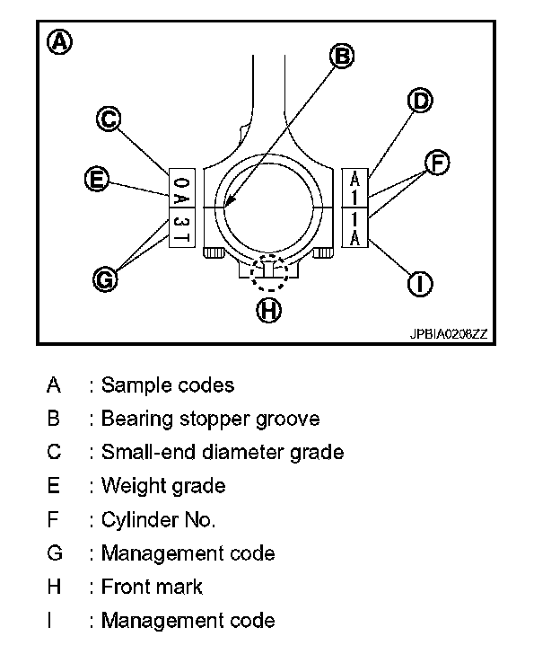 1. Apply connecting rod big end diameter grade stamped (D) on connecting rod side face to the row in the "CONNECTING ROD BEARING SELECTION TABLE".