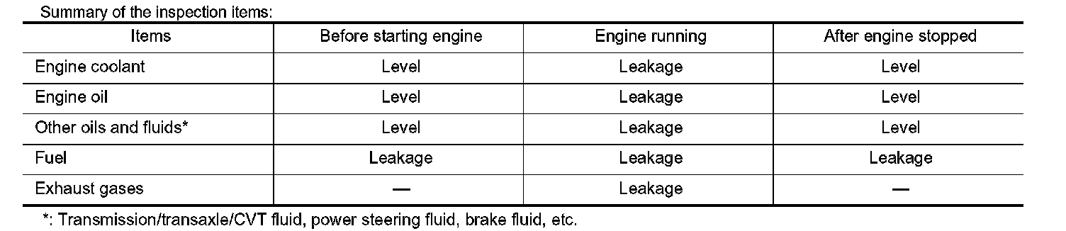 The following are procedures for checking fluid leakage, lubricant leakage.