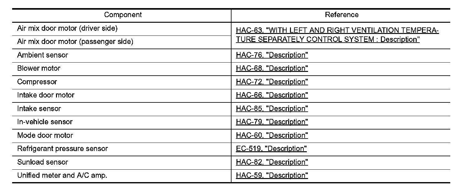 WITH LEFT AND RIGHT VENTILATION TEMPERATURE SEPARATELY CONTROL SYSTEM : Component Description
