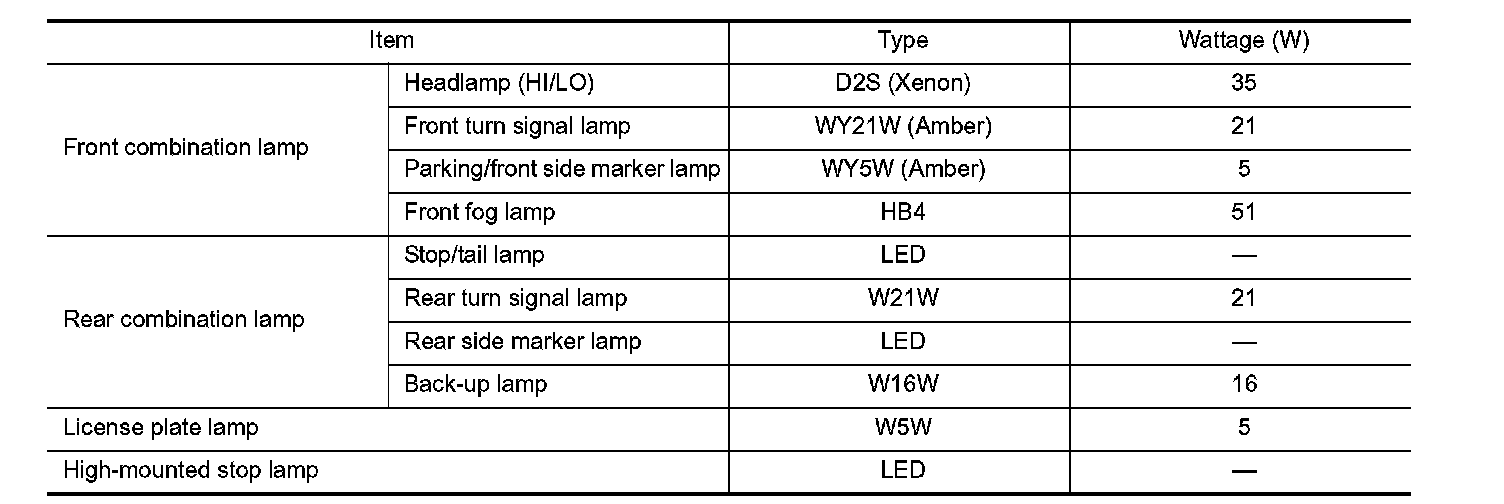 Bulb Specifications