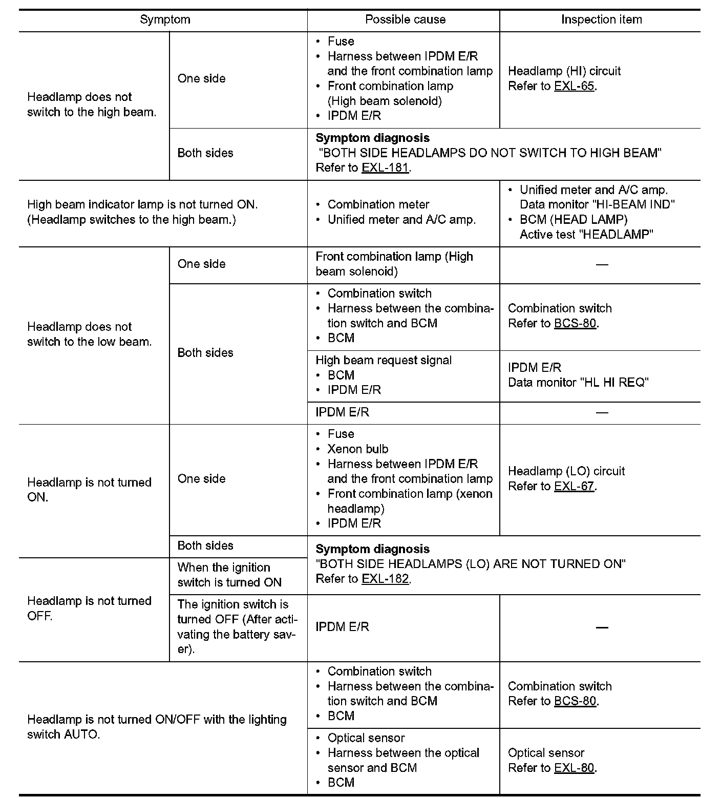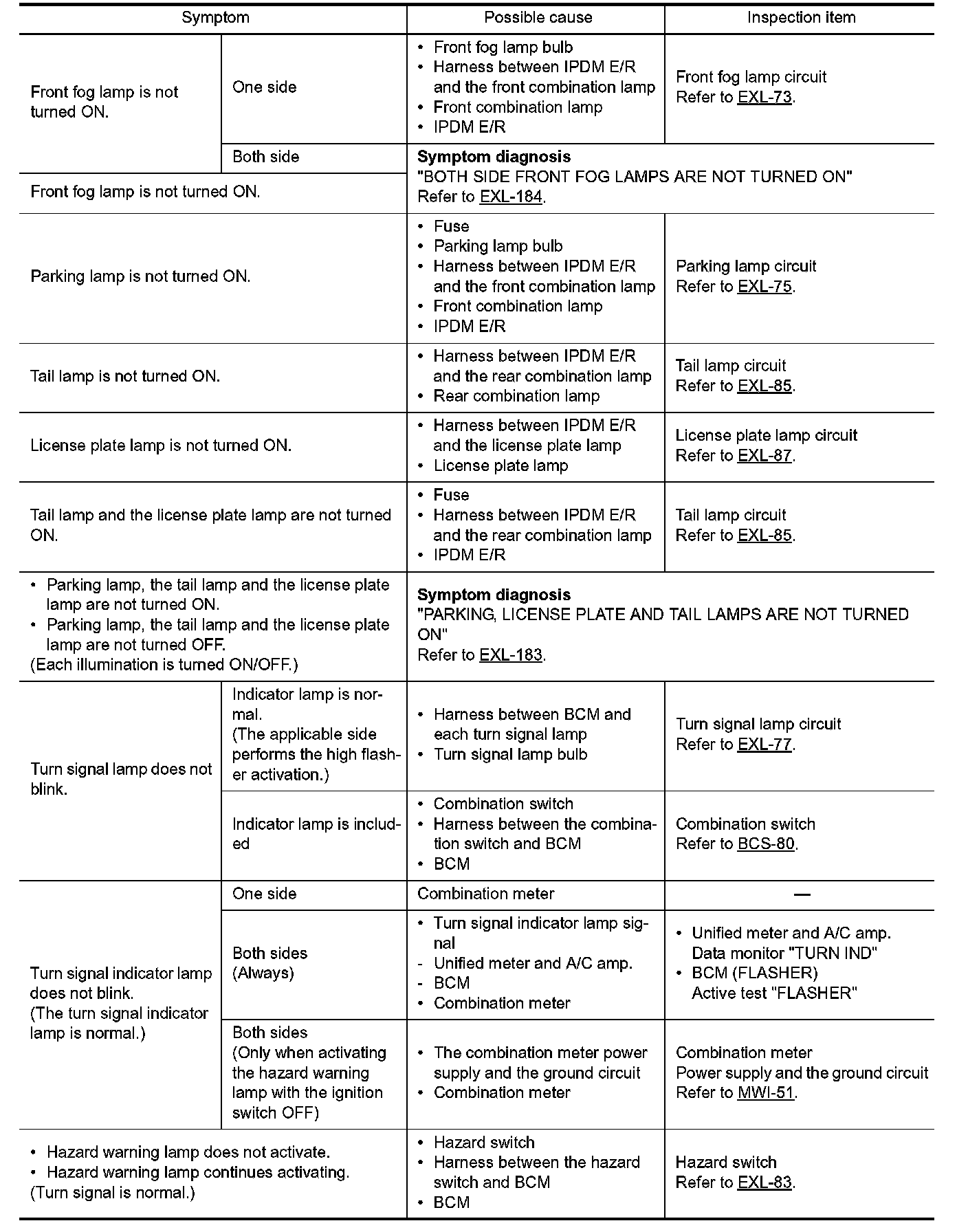 EXTERIOR LIGHTING SYSTEM SYMPTOMS