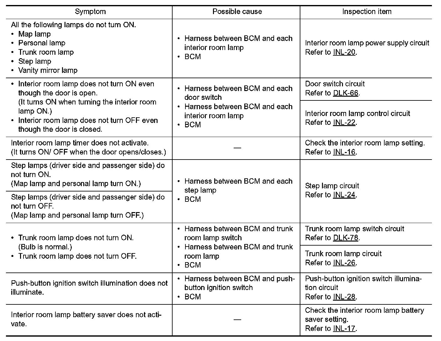INTERIOR LIGHTING SYSTEM SYMPTOMS