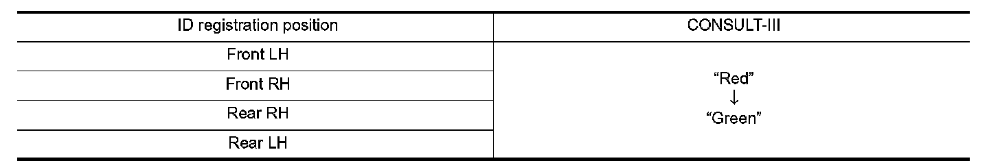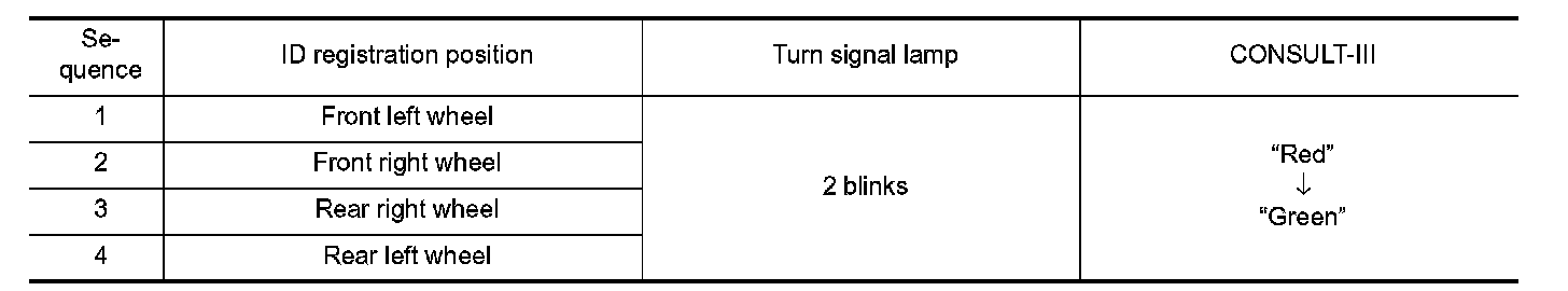Perform the ID registration procedure starting from the vehicle front left wheel, then repeat the procedure in the order of the front right wheel, rear right wheel, and rear left wheel.