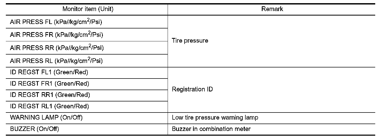 AIR PRESSURE MONITOR : CONSULT-III Function (BCM - AIR PRESSURE MONITOR)