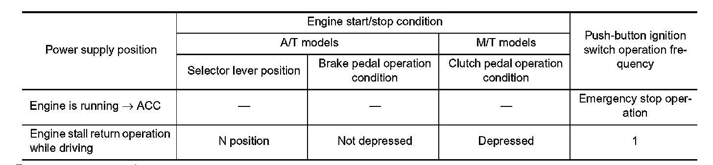 POWER SUPPLY POSITION CHANGE TABLE BY PUSH-BUTTON IGNITION SWITCH OPERATION