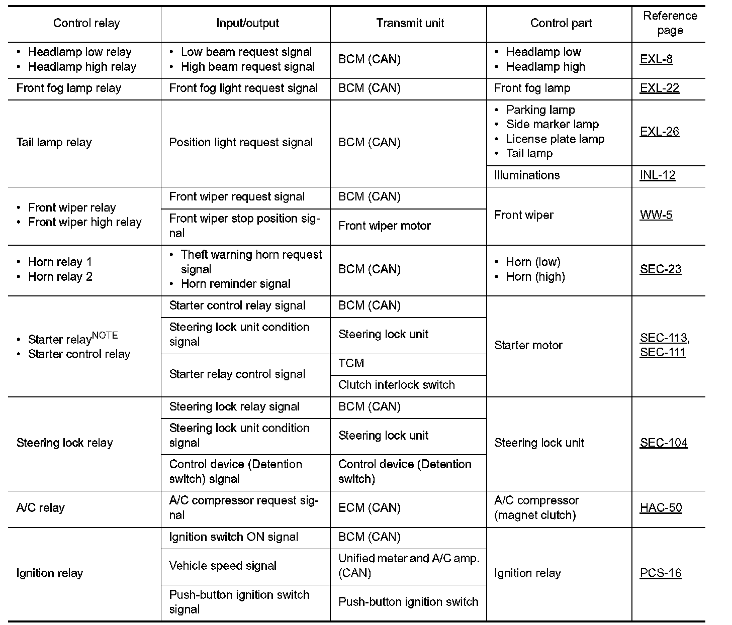IPDM E/R activates the internal control circuit to perform the relay ON-OFF control according to the input signals from various sensors and the request signals received from control units via CAN communication.