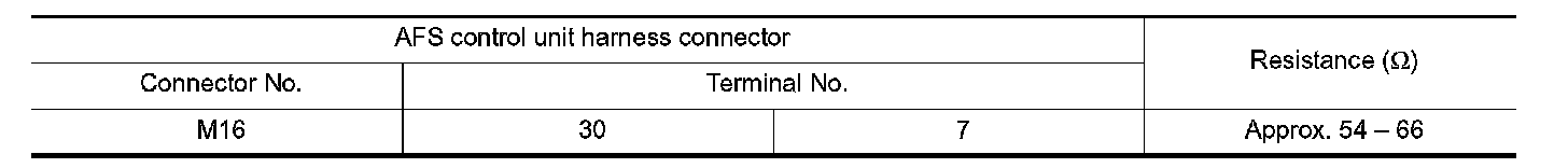 2. Check the resistance between the AFS control unit harness connector terminals.
