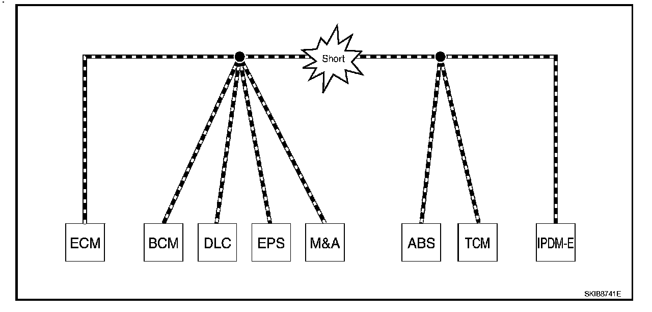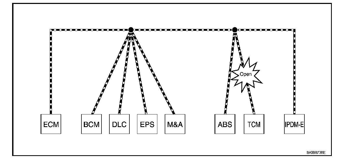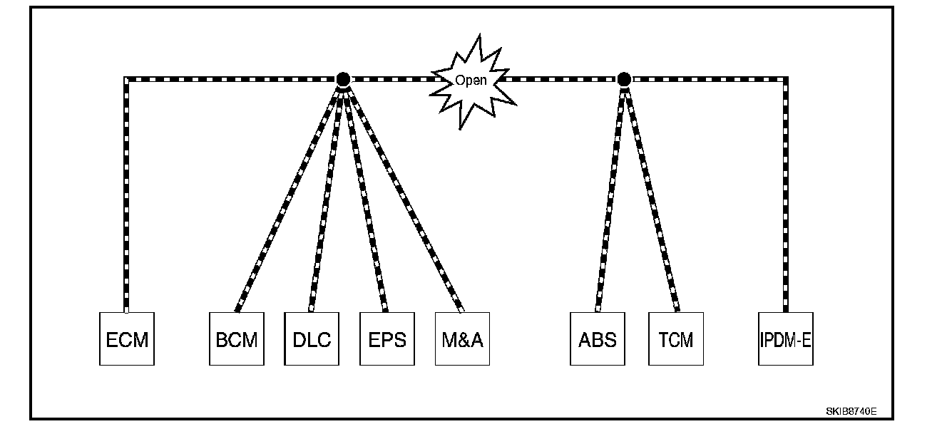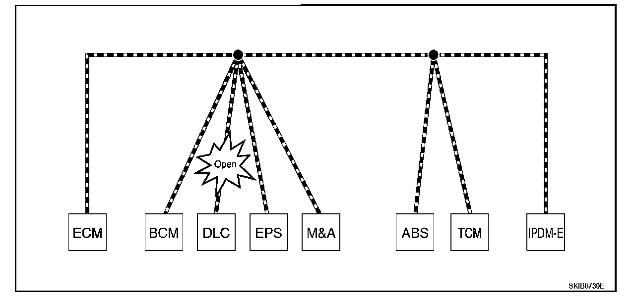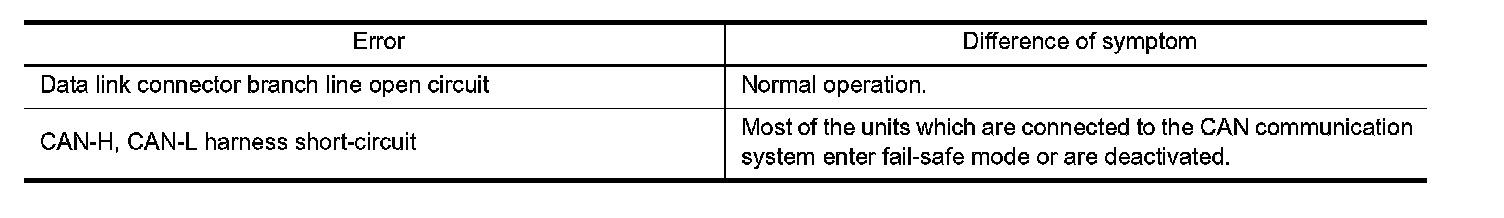 - When data link connector branch line is open, transmission and reception of CAN communication signals are not affected. Therefore, no symptoms occur. However, be sure to repair malfunctioning circuit.