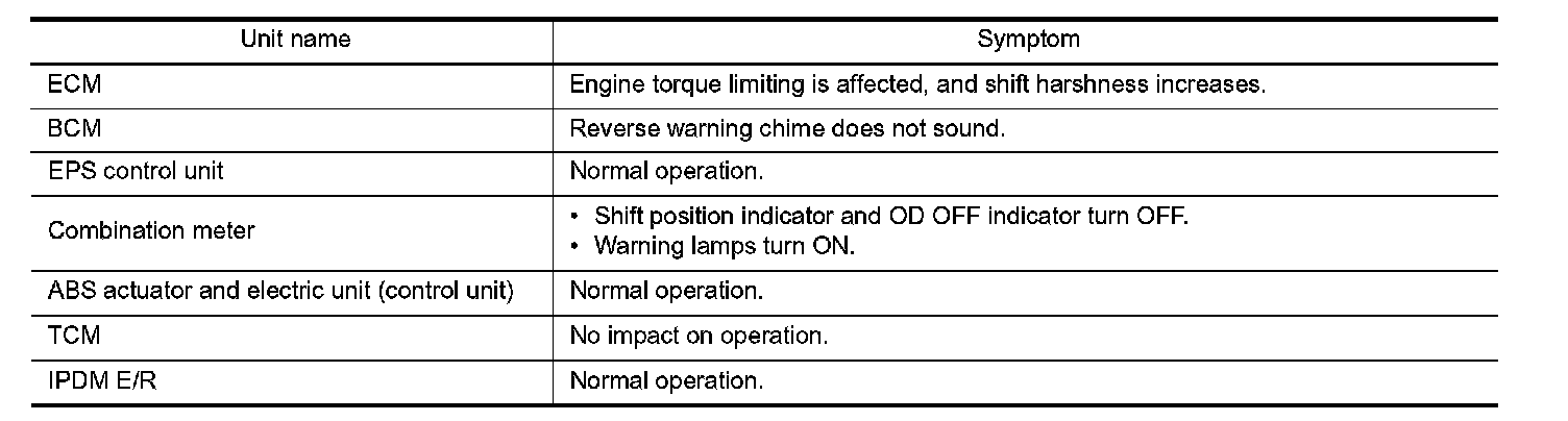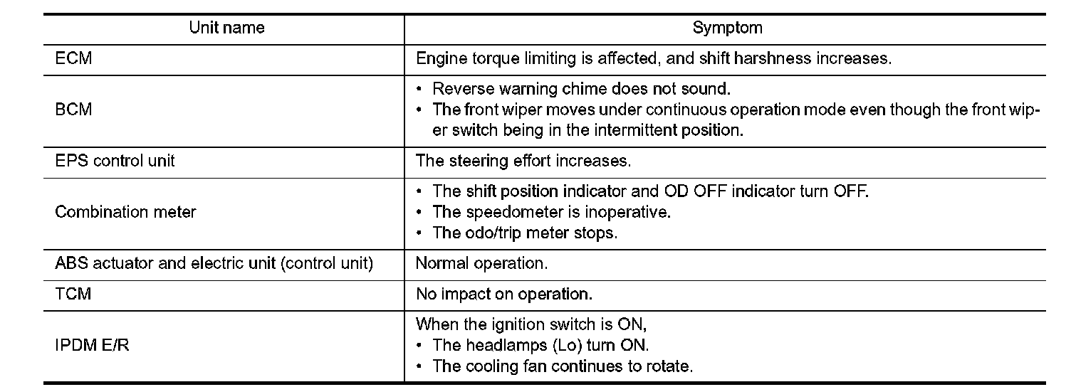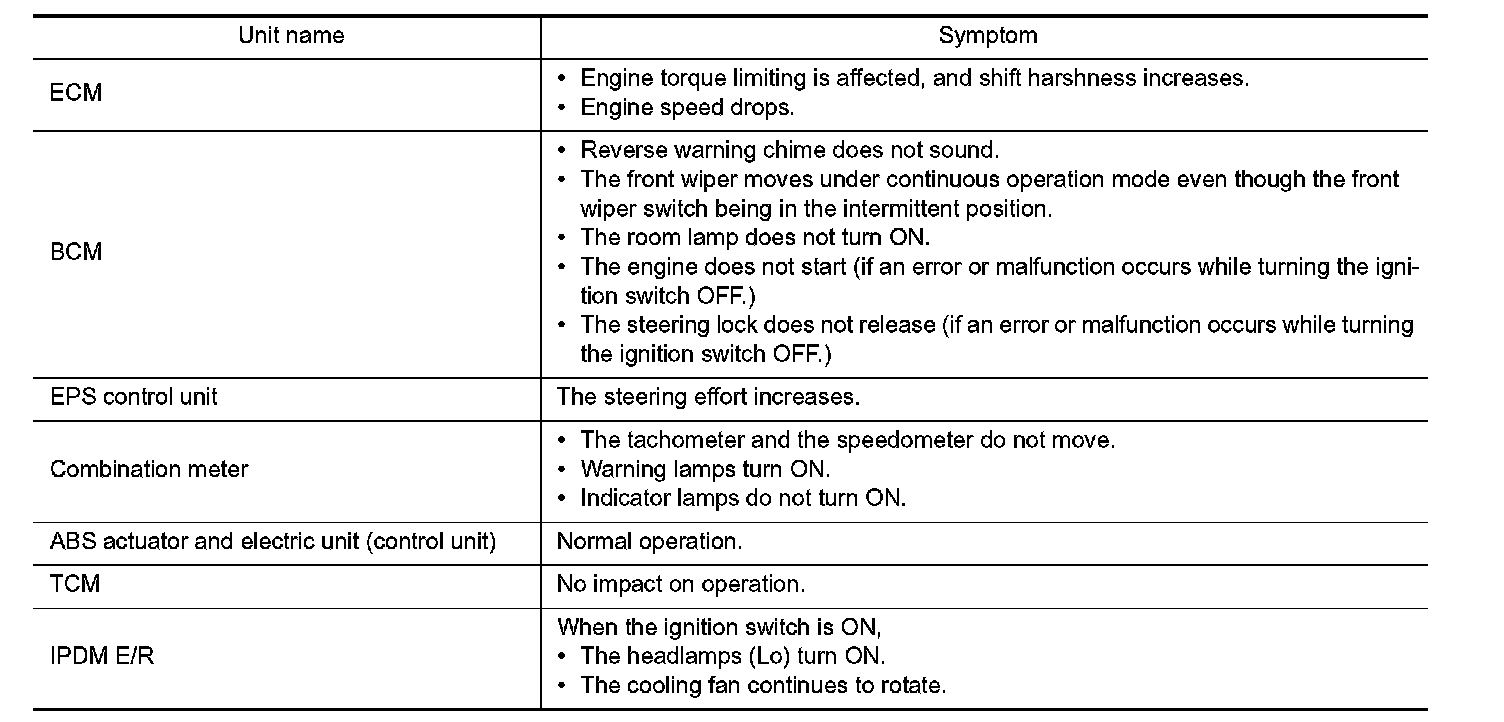 - Each vehicle differs in symptom of each unit under fail-safe mode and CAN communication line wiring.