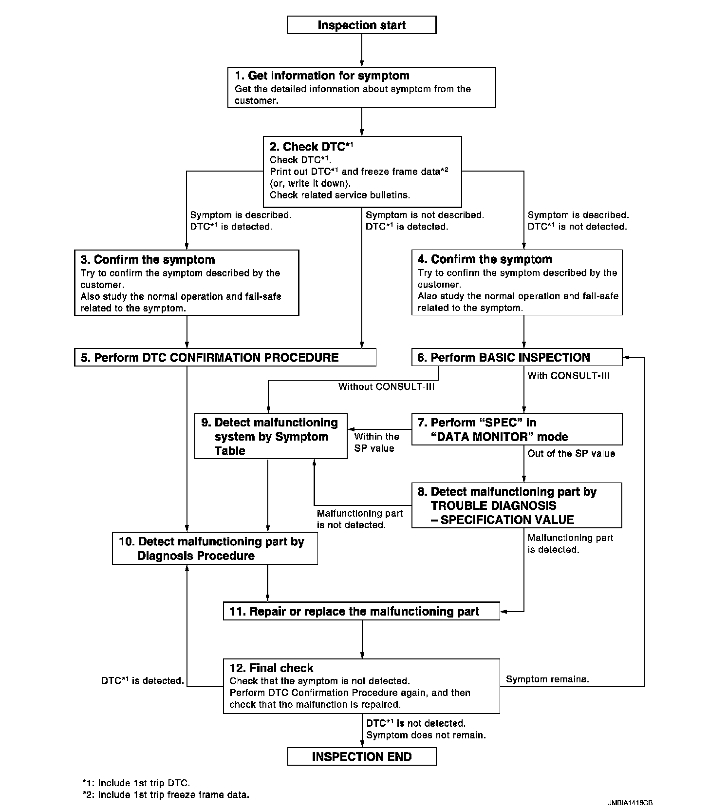 - Study the relationship between the cause detected by DTC and the symptom described by the customer.