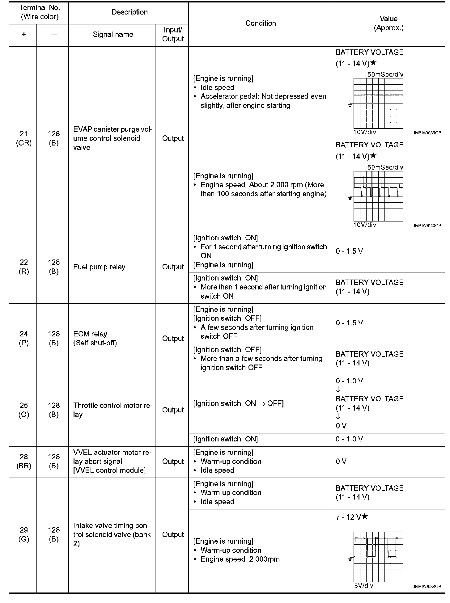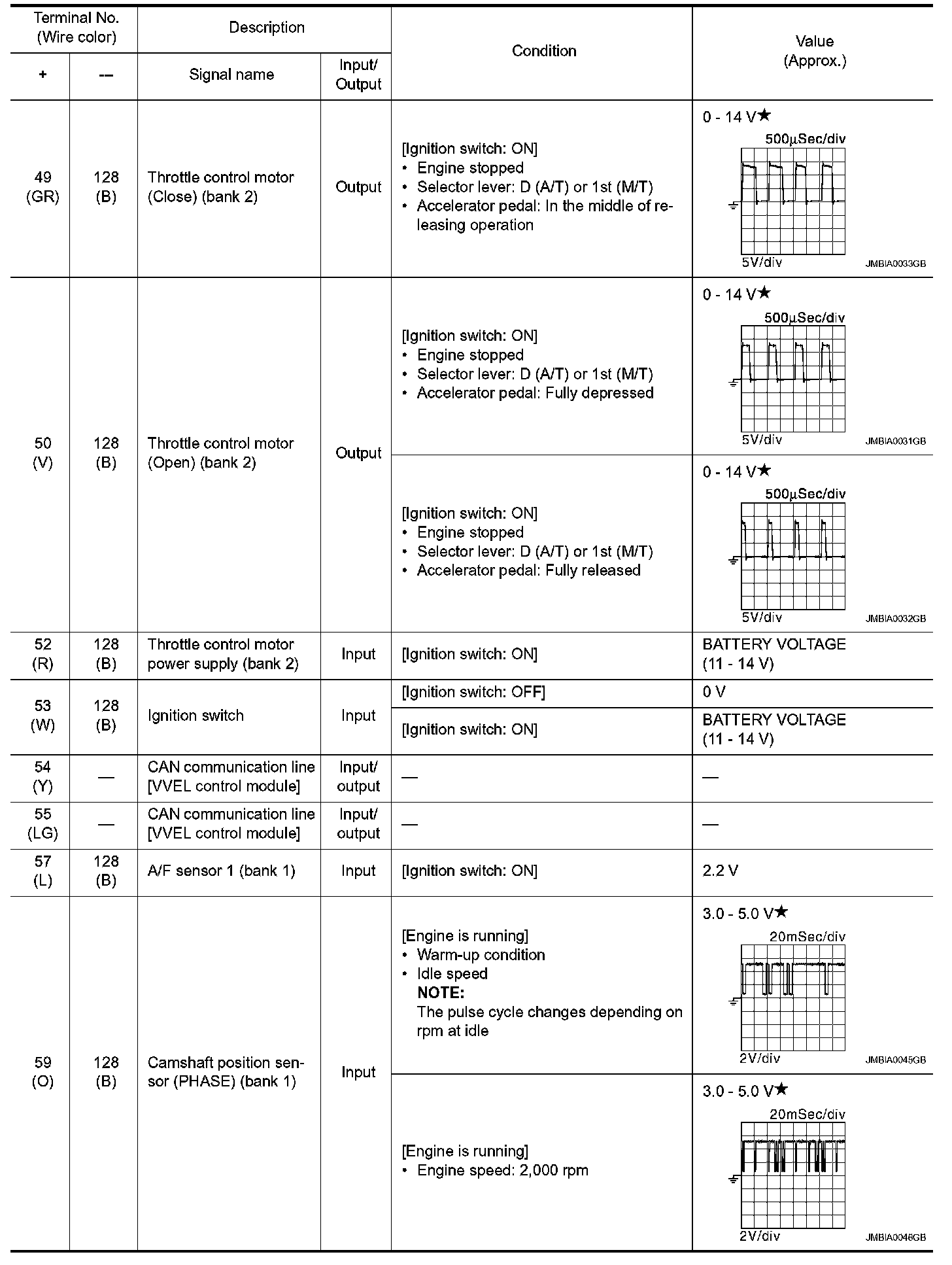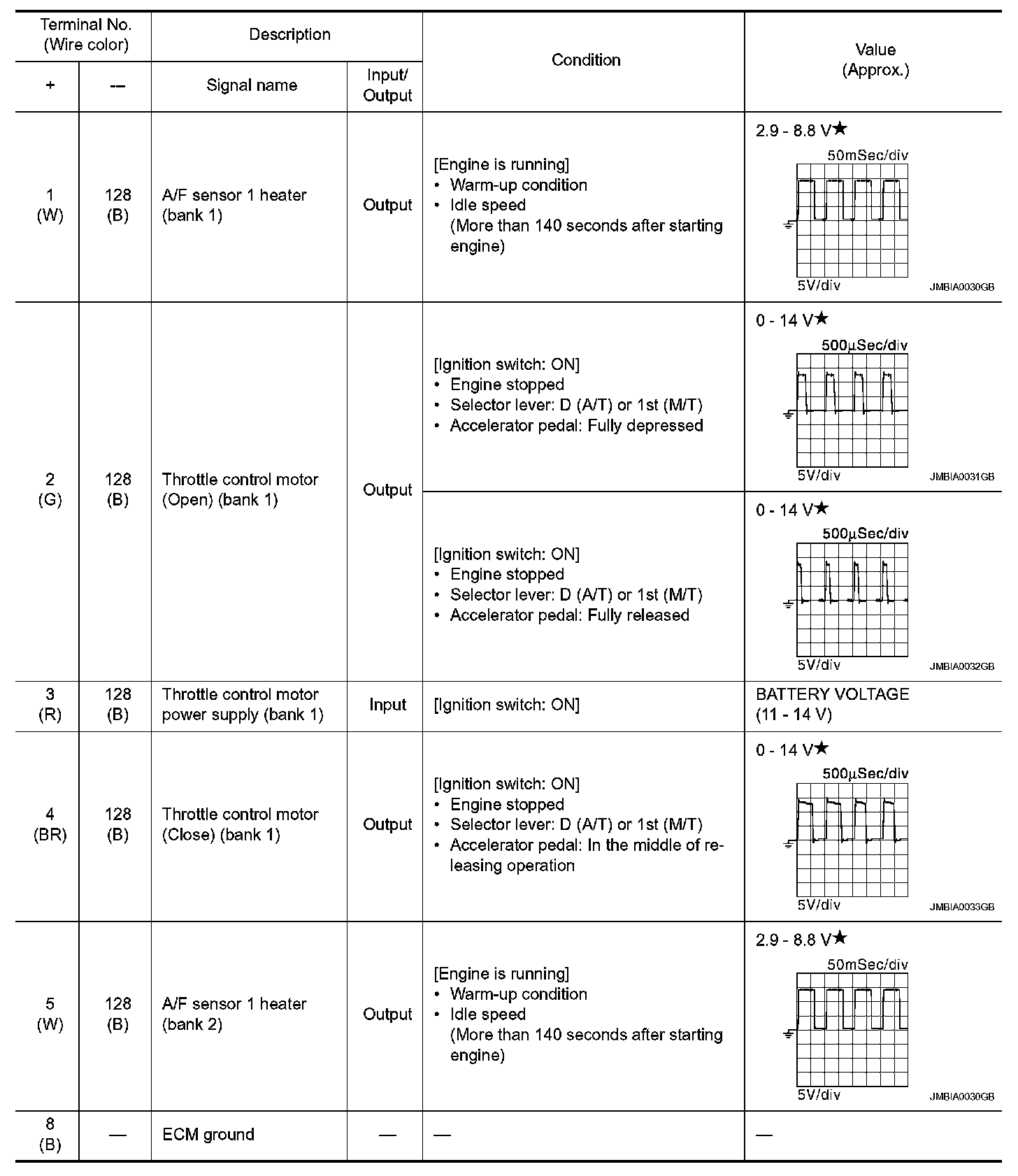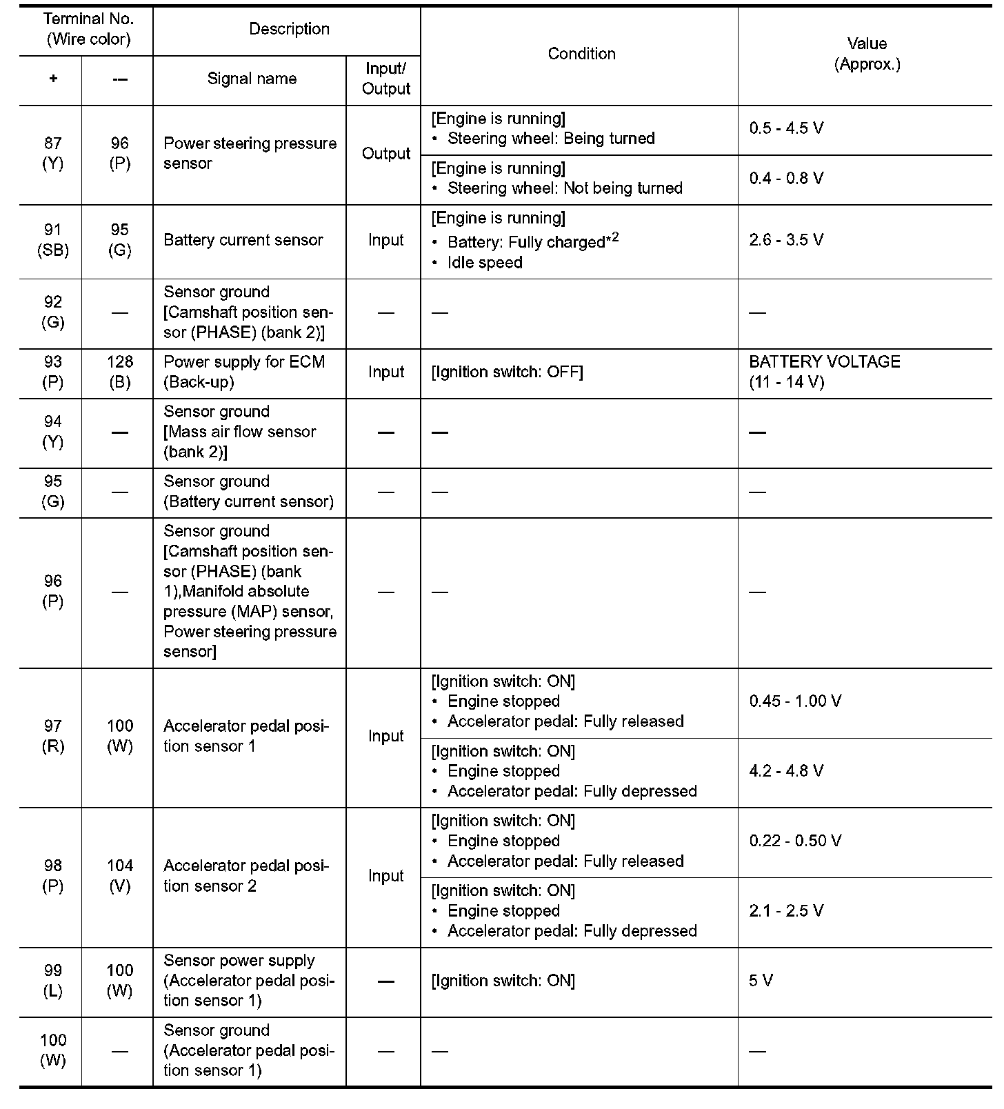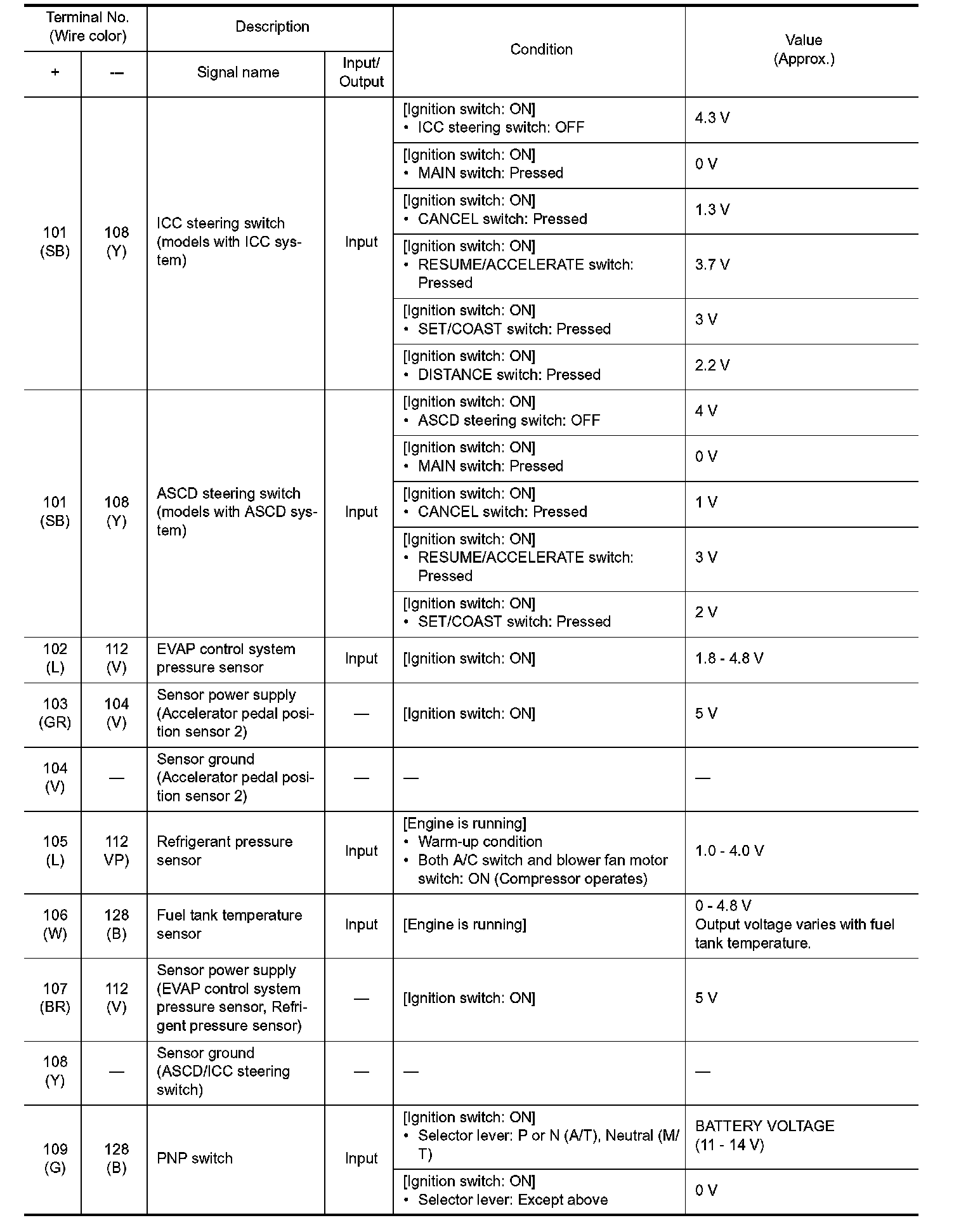 - Specification data are output/input values which are detected or supplied by the ECM at the connector.