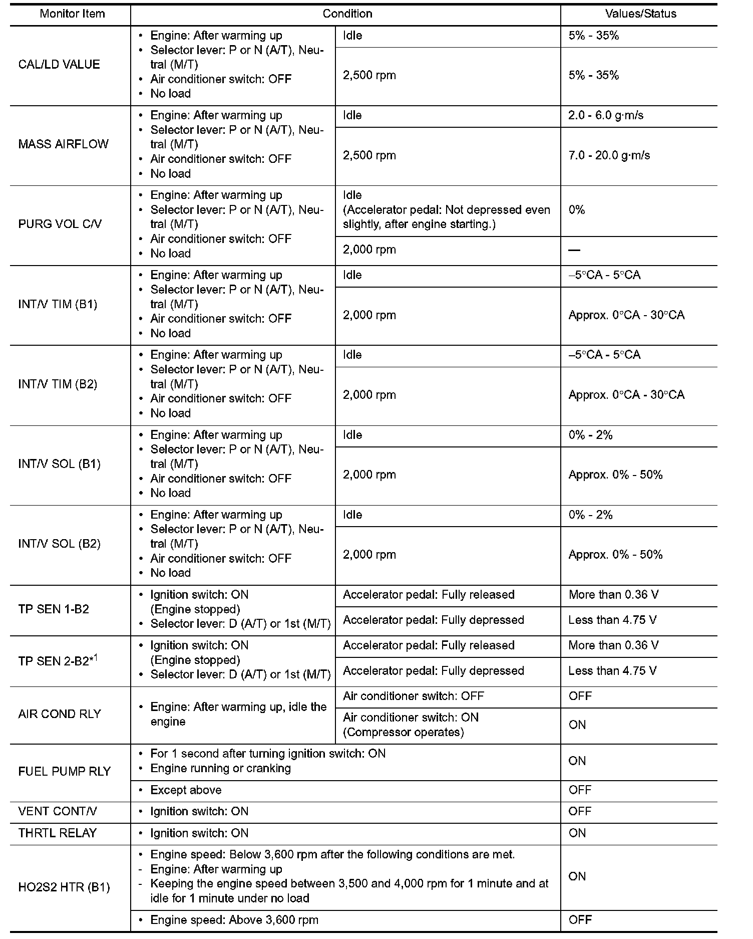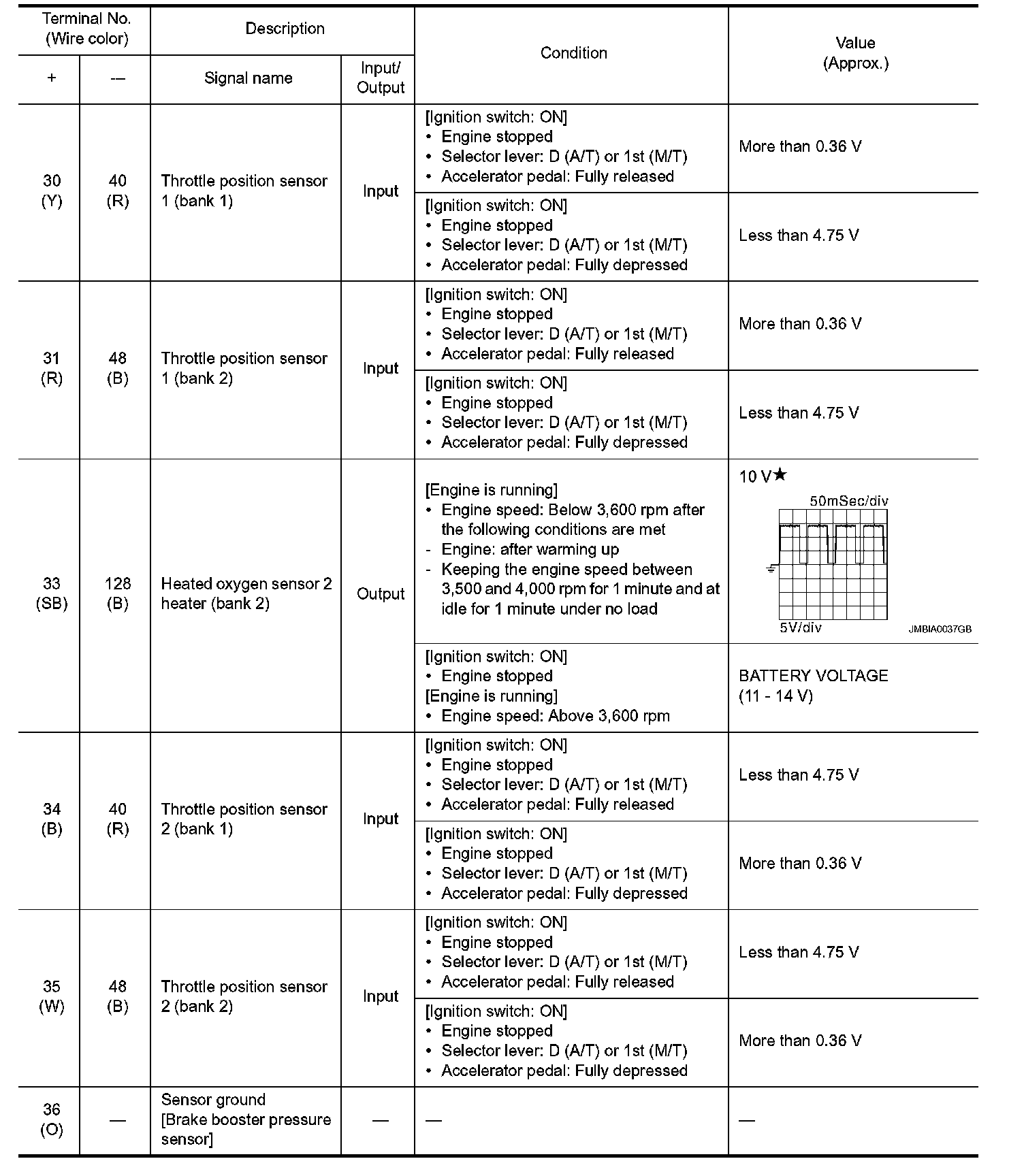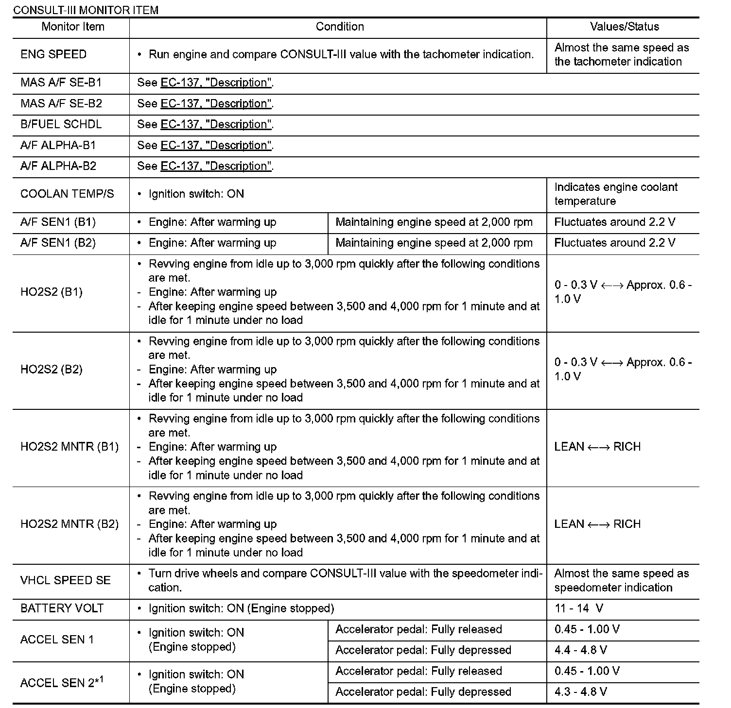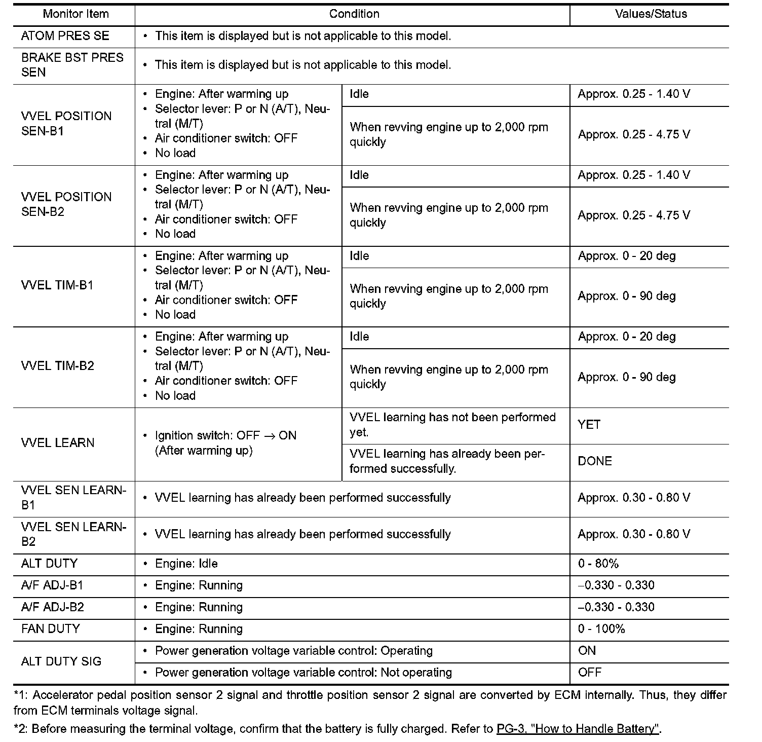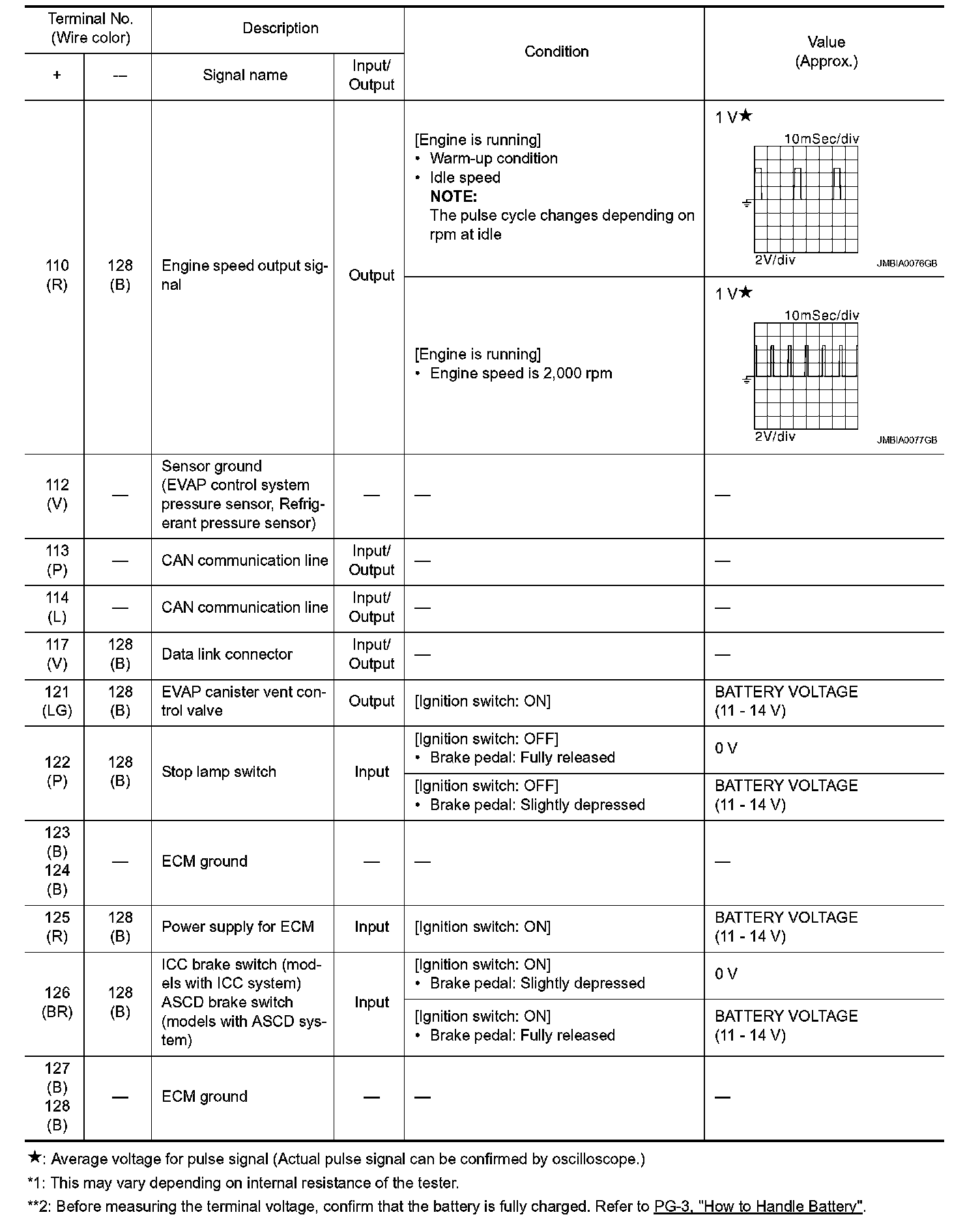 - Specification data are output/input values which are detected or supplied by the ECM at the connector.