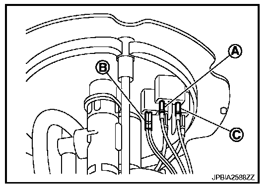 3. Connect the white (A), black (B), and red (C) harnesses so that they are in the positions shown in the figure.