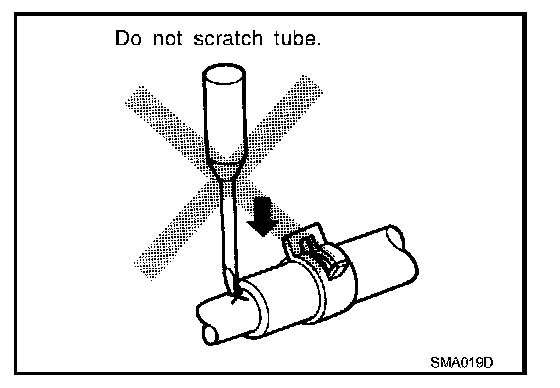 - To prevent damage to rubber hose, do not pry off rubber hose with tapered tool or screwdriver.