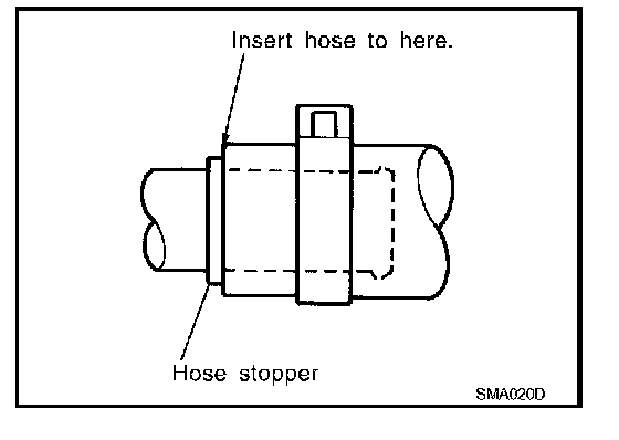 - To reinstall the rubber hose securely, make sure that hose insertion length and orientation is correct. (If tube is equipped with hose stopper, insert rubber hose into tube until it butts up against hose stopper.)